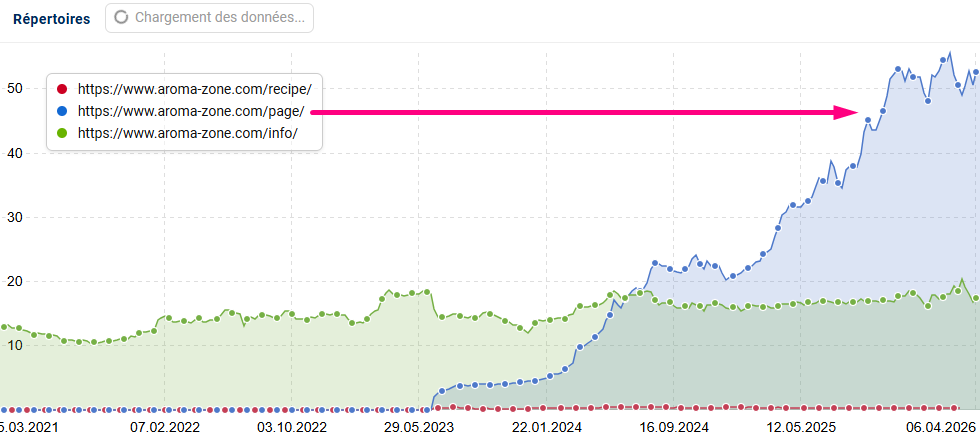 Ce qui est encore plus précieux, elle est drivée entièrement par les pages de catégories (/cat/), c’est-à-dire, les pages transactionnelles :