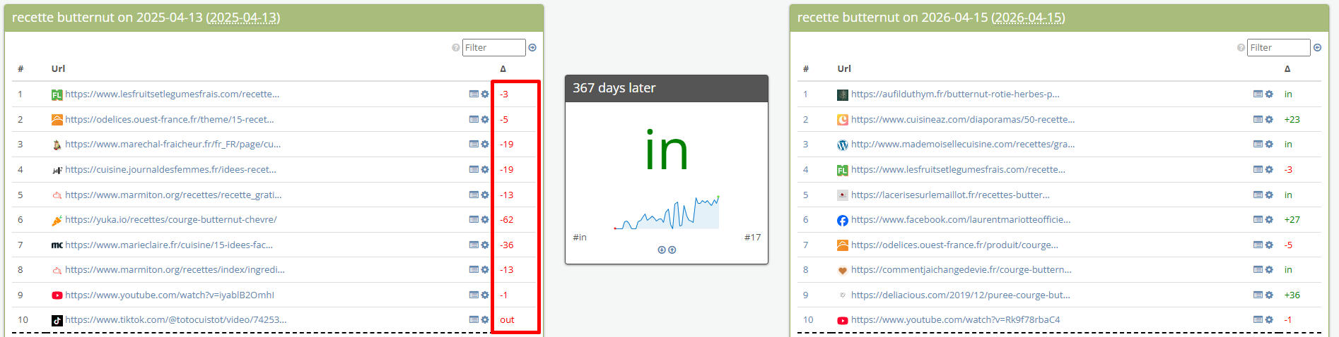 Mot-clé “Recette butternut“ vs 1 an :