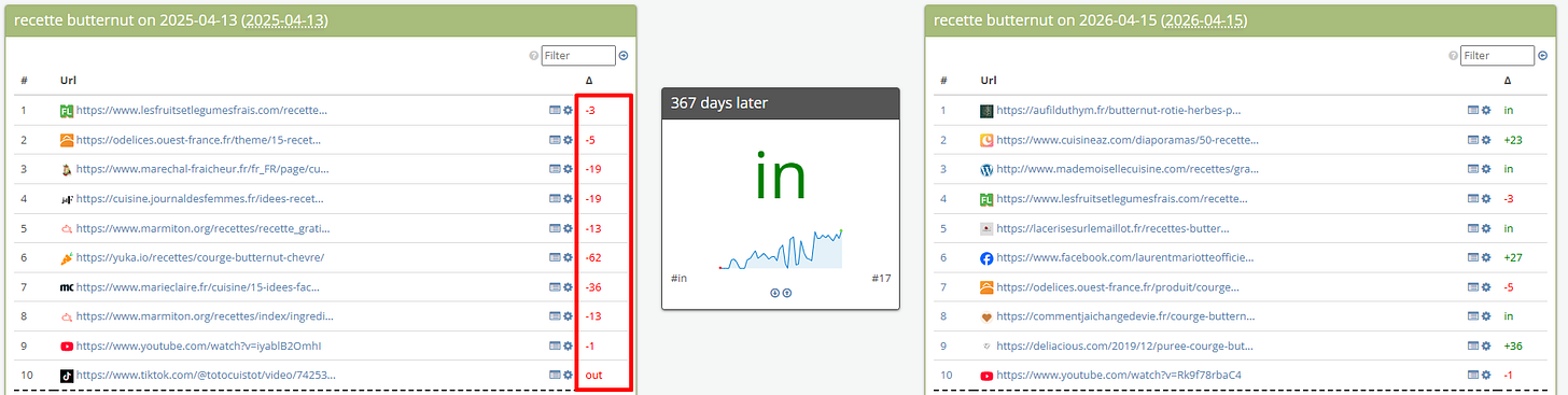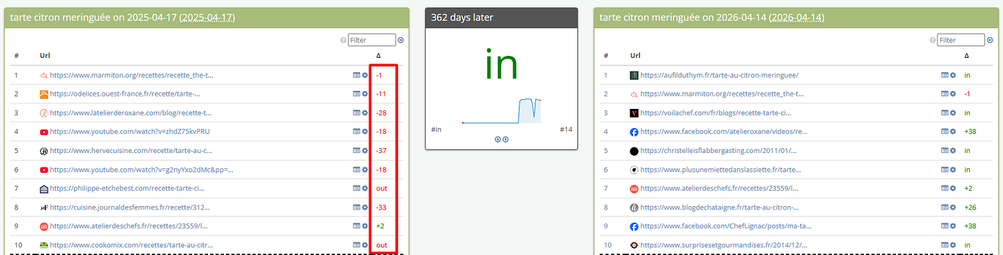 Je me suis volontairement arrêté sur la catégorie des recettes dans ma sélection, car elle reflète, à mon sens, de la manière la plus évidente la tendance de Google à valoriser le contenu “Made by Human”, dont l’influence, dans d’autres thématiques, est souvent masquée par d’autres signaux de classement.