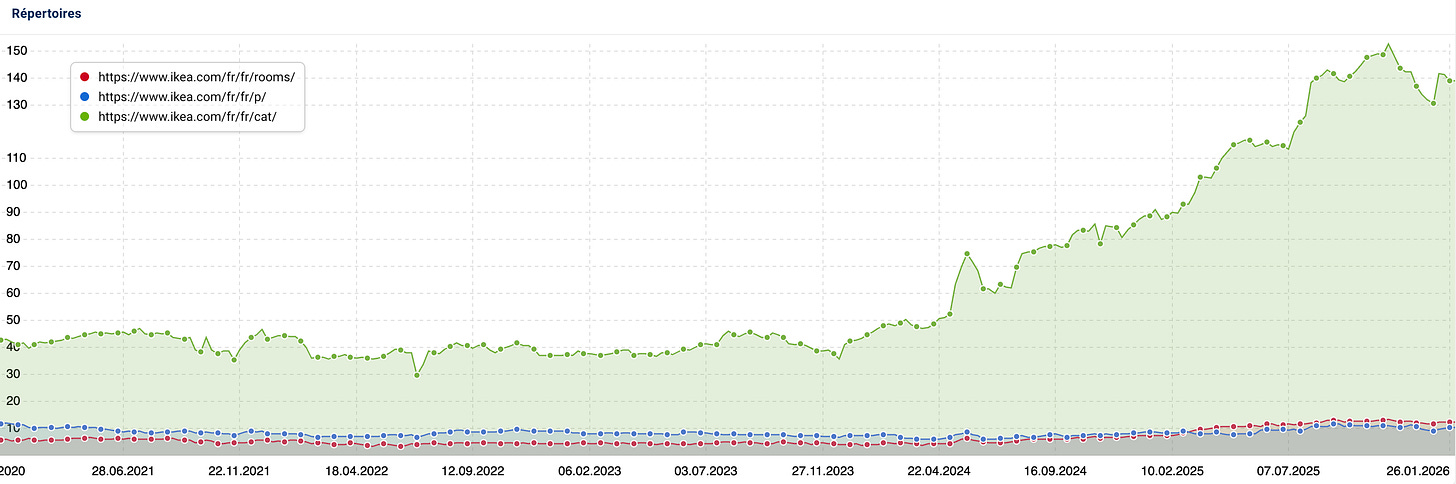 Pour la comprendre, il faut reculer d’un an et demie, où en juin 2024 ikea.com déploie une navigation à facettes et se dote d’une large palette de nouvelles pages listes de produits.